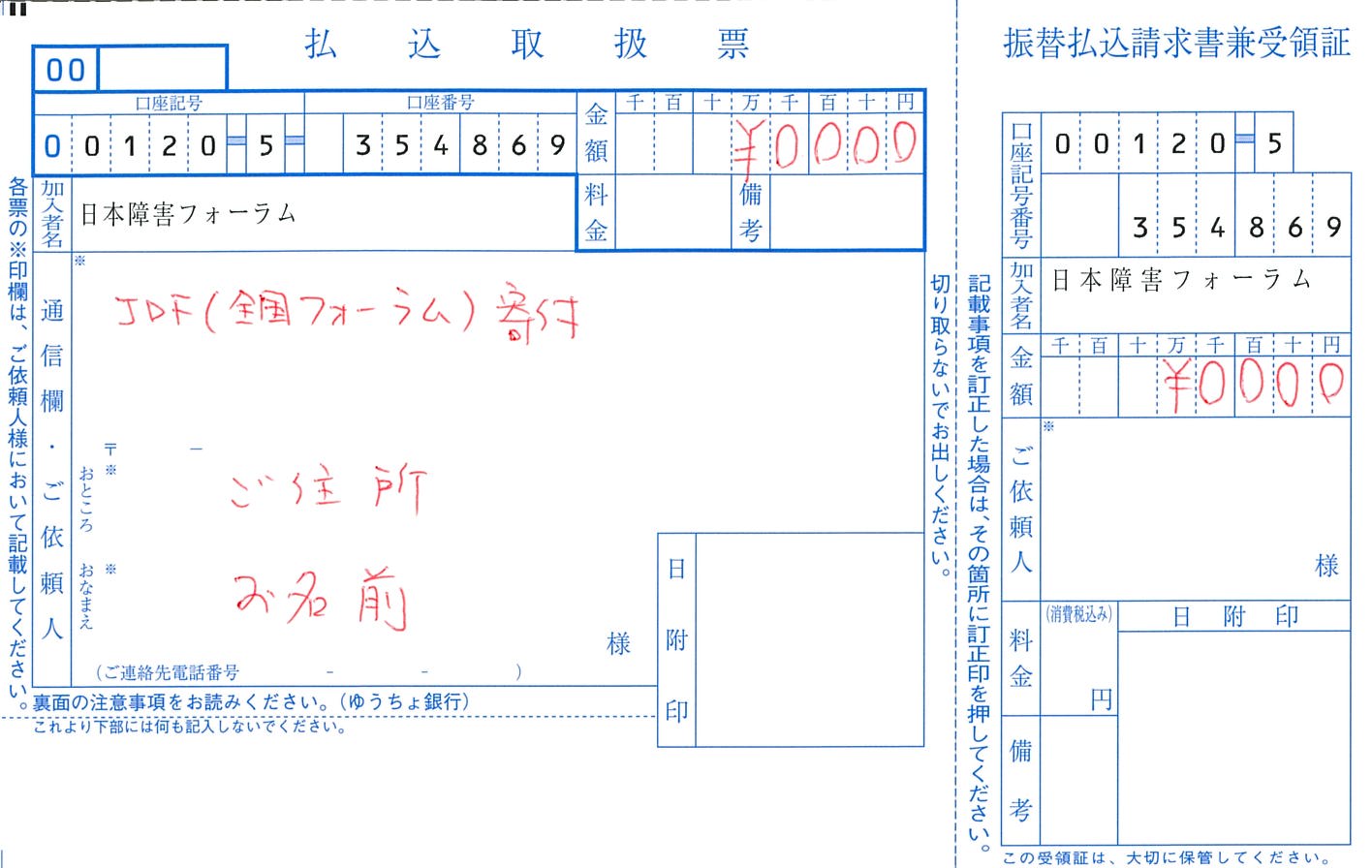 名義 日本障害フォーラム(ニホンショウガイフォーラム)